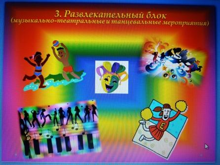 | 3 блок. Развлекательный | 1. Веселая викторина «Азбука театра» 2. «Музыкальная угадай-ка» | https://www.youtube.com/watch?v=TGQSSm58qXI&feature=youtu.be https://www.youtube.com/watch?v=8KbIZBK2fcA&feature=youtu.be https://www.youtube.com/watch?v=7qYrYYTonNk&feature=youtu.be |